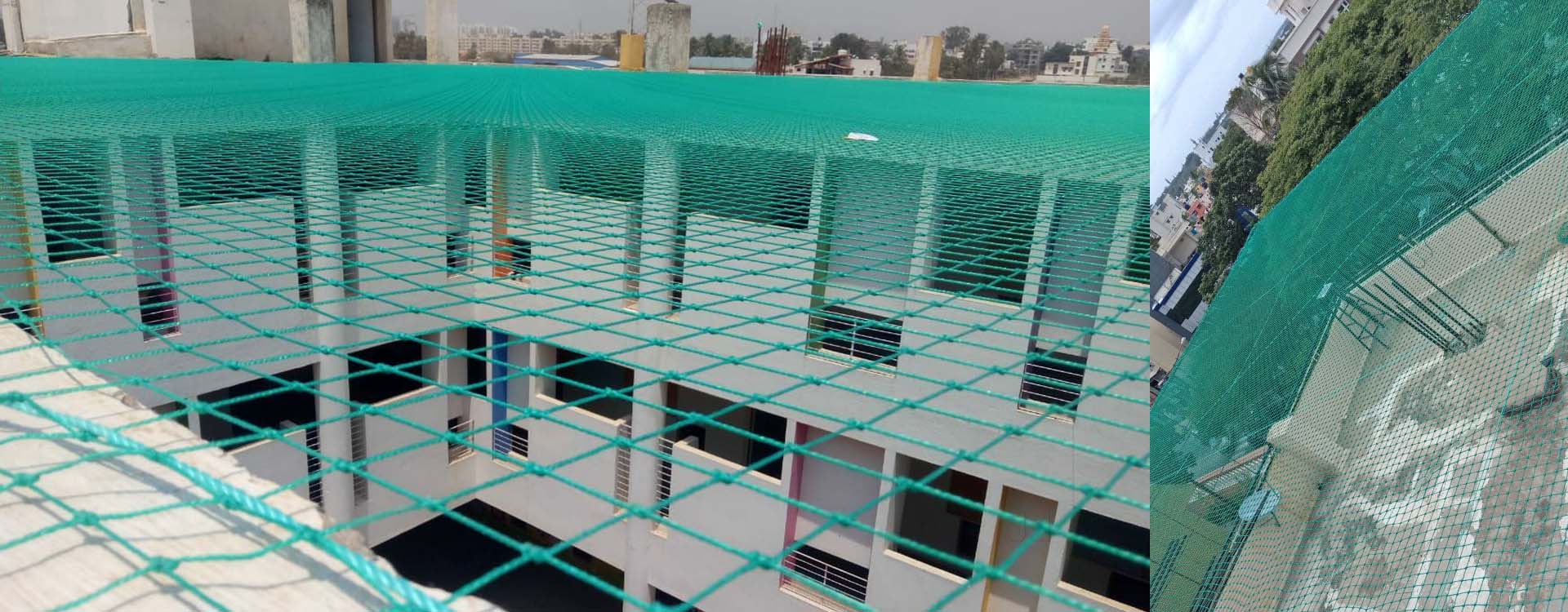 Nets, Building Safety Nets, cloth hanger Safety Nets, Swimming Pool Safety Nets Stairway Safety nets, Monkey Safety Nets, Terrace Top Nets, Glass Safety Nets, Car Parking Safety Nets, Coconut Tree Nets, All types of Safety